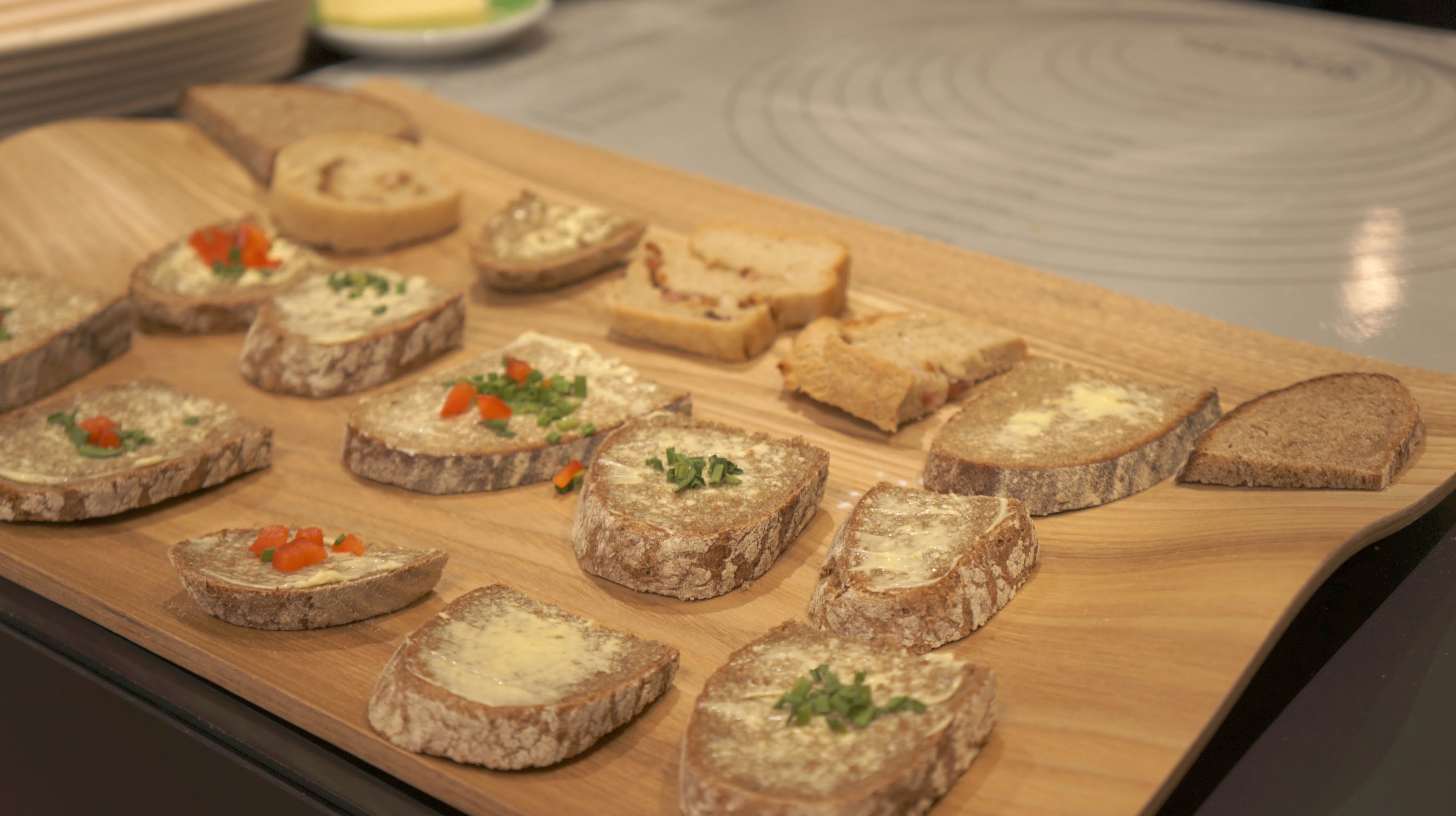 Brot lässt sich auf vielerlei Weise kreativ belegen. Einfach mit Butter, um den Brotgeschmack zu verstärken oder mit Streichkäse.